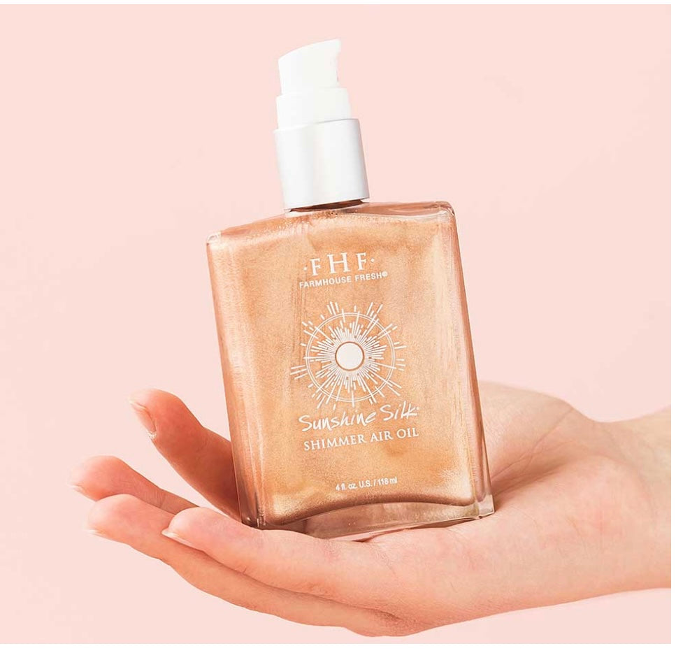 What it is: Nourish your skin with our weightless Sunshine Silk® Shimmer Air Oil. Infused with a touch of rose-gold illumination for a touchably soft, supple glow.