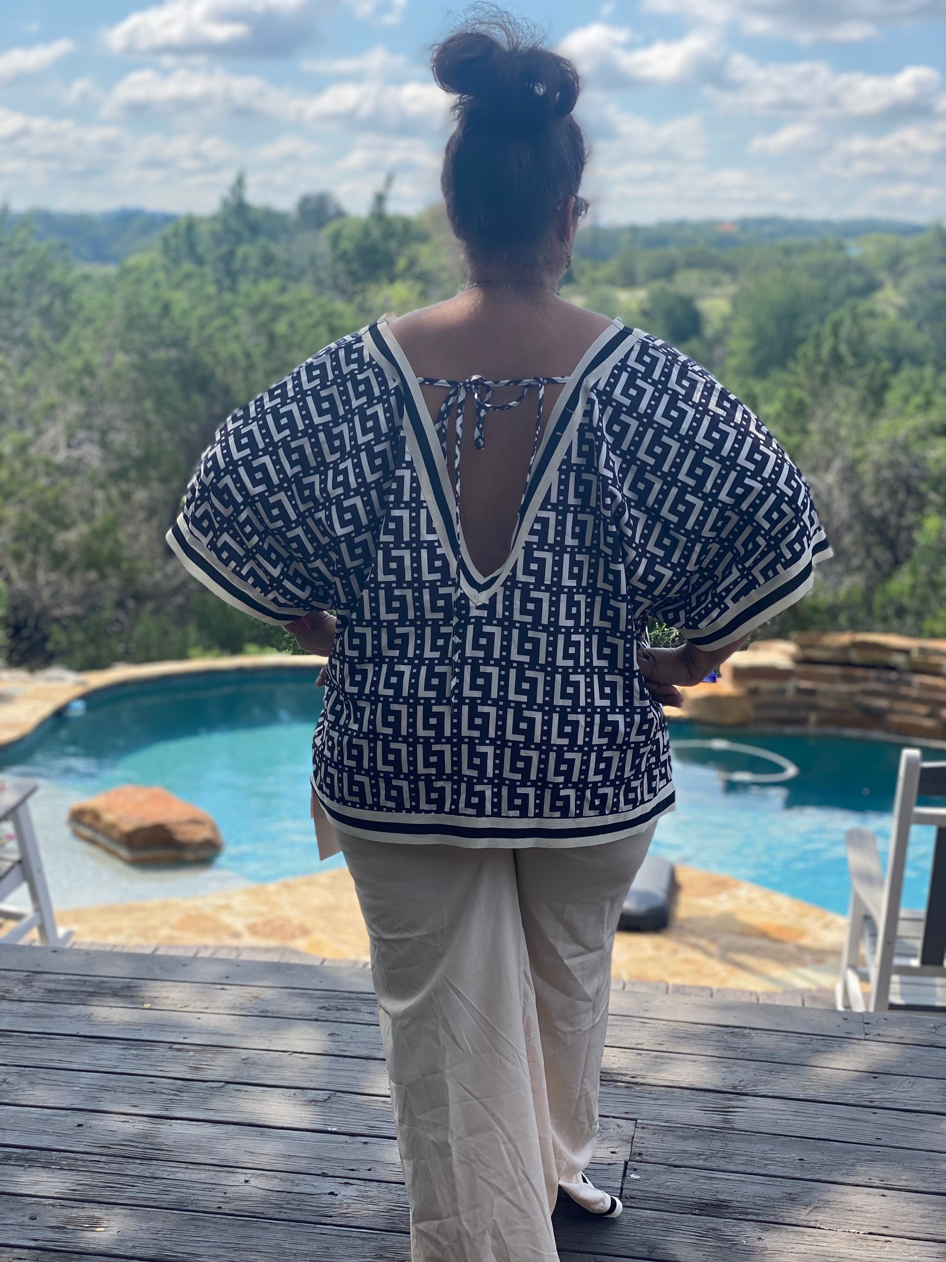 URBAN LOOSE PRINTED - NECK TOP & DRAWSTRING WIDE LEG PANTS